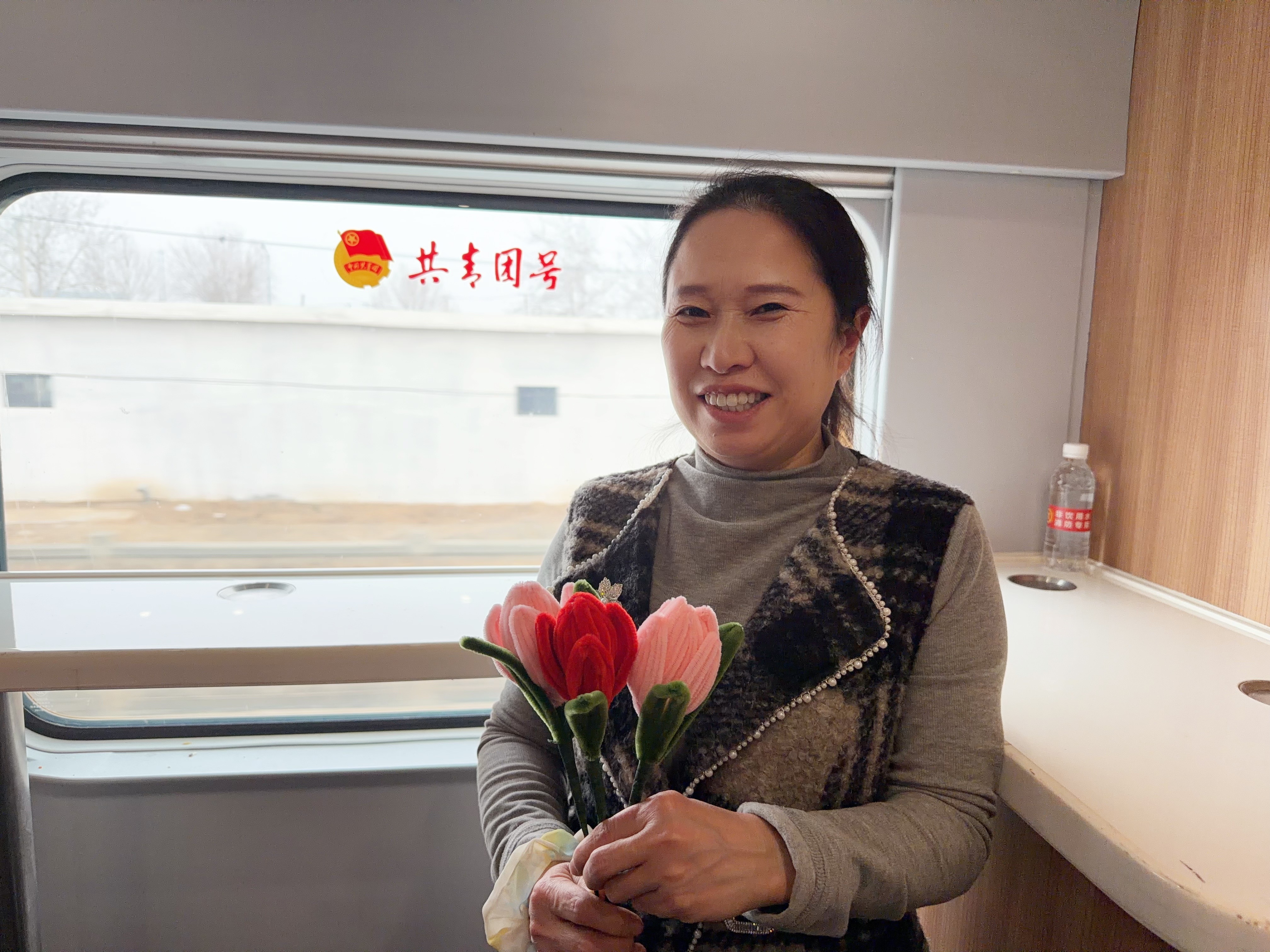 “没想到在车上收到这么特别的礼物,这个节日在车上过的特别有意义!”一位收到玫瑰的阿姨拉着蔡车长的手感慨道。年轻的姑娘们则纷纷举起手中的花朵与乘务员合影留念,将这份旅途中的惊喜定格在镜头里。