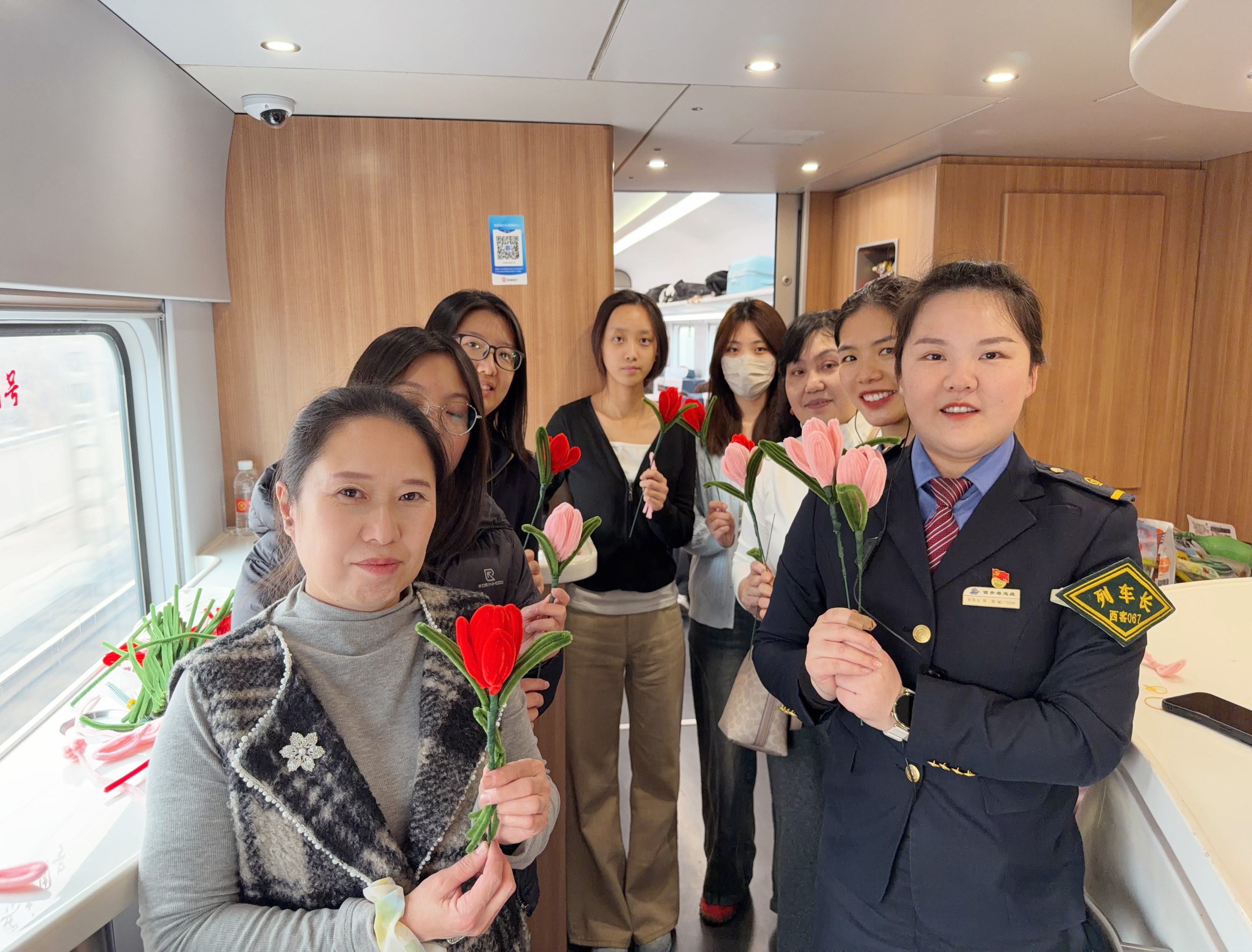 一朵朵玫瑰,传递的是温暖;一声声祝福,拉近的是距离。在这个属于女性的日子里,D44次列车用温情与巧思,为旅客的归途增添了一抹亮色,也让“人民铁路为人民”的服务理念在细微处闪闪发光。活动在旅客的掌声与笑容中圆满结束,车厢内外,一路芬芳。