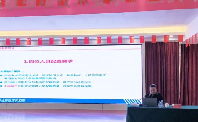 交通运输部公路科学研究院专家曾诚研究员围绕两项新国标的核心条款作了专题解读。他从标准修订背景、关键要求、实施要点与监管重点四个维度展开剖析,并结合日照本地驾校的培训业务与教练场地等实际情况,对落实新国标要求提出建议,进一步明确了行业合规运营的具体路径。