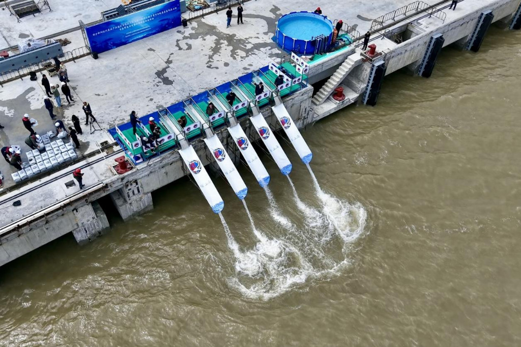 随着按键按下,投放装置平稳启动,水箱中的中华鲟顺着预设的滑梯,缓缓滑入长江。一尾尾灵动的幼苗跃入碧波,向着长江深处游去,承载着全社会守护水生生物、修复生态环境的共同期盼。